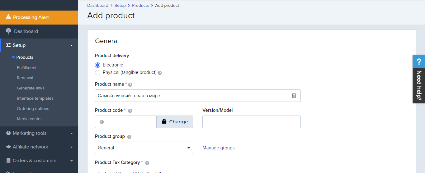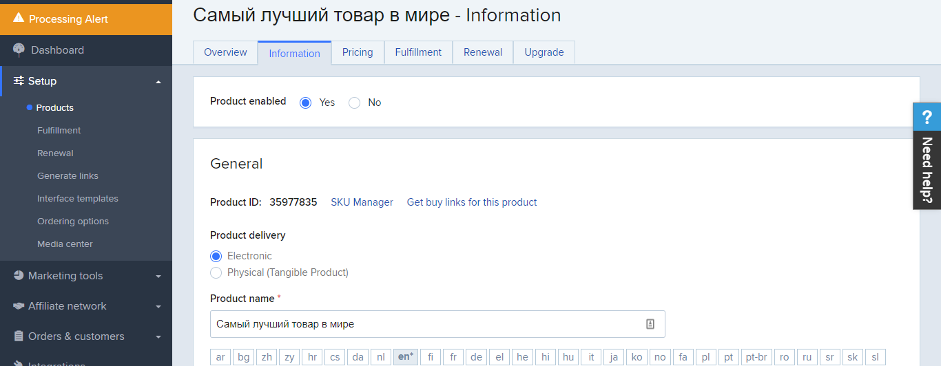 Заполняем все необходимые поля (их всего 3-4). Сохраняем этот товар.